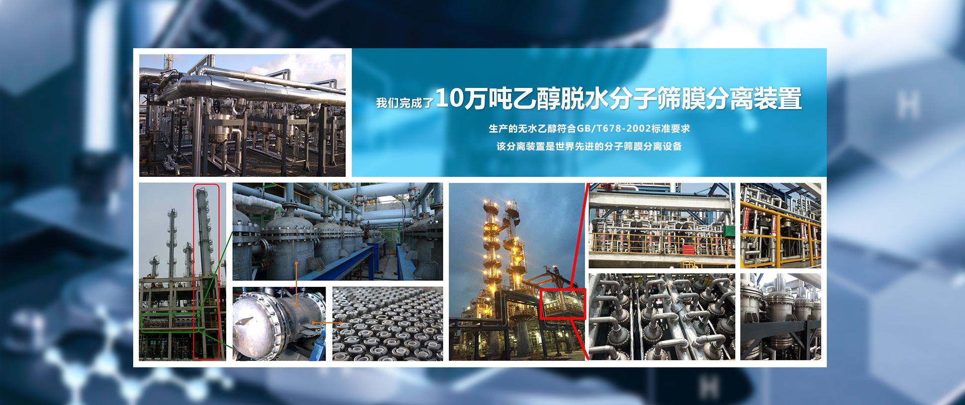 大連海斯特科技有限公司在索普集團醋酸加氫制乙醇項目中完成3萬噸/年乙醇分子篩膜脫水項目。